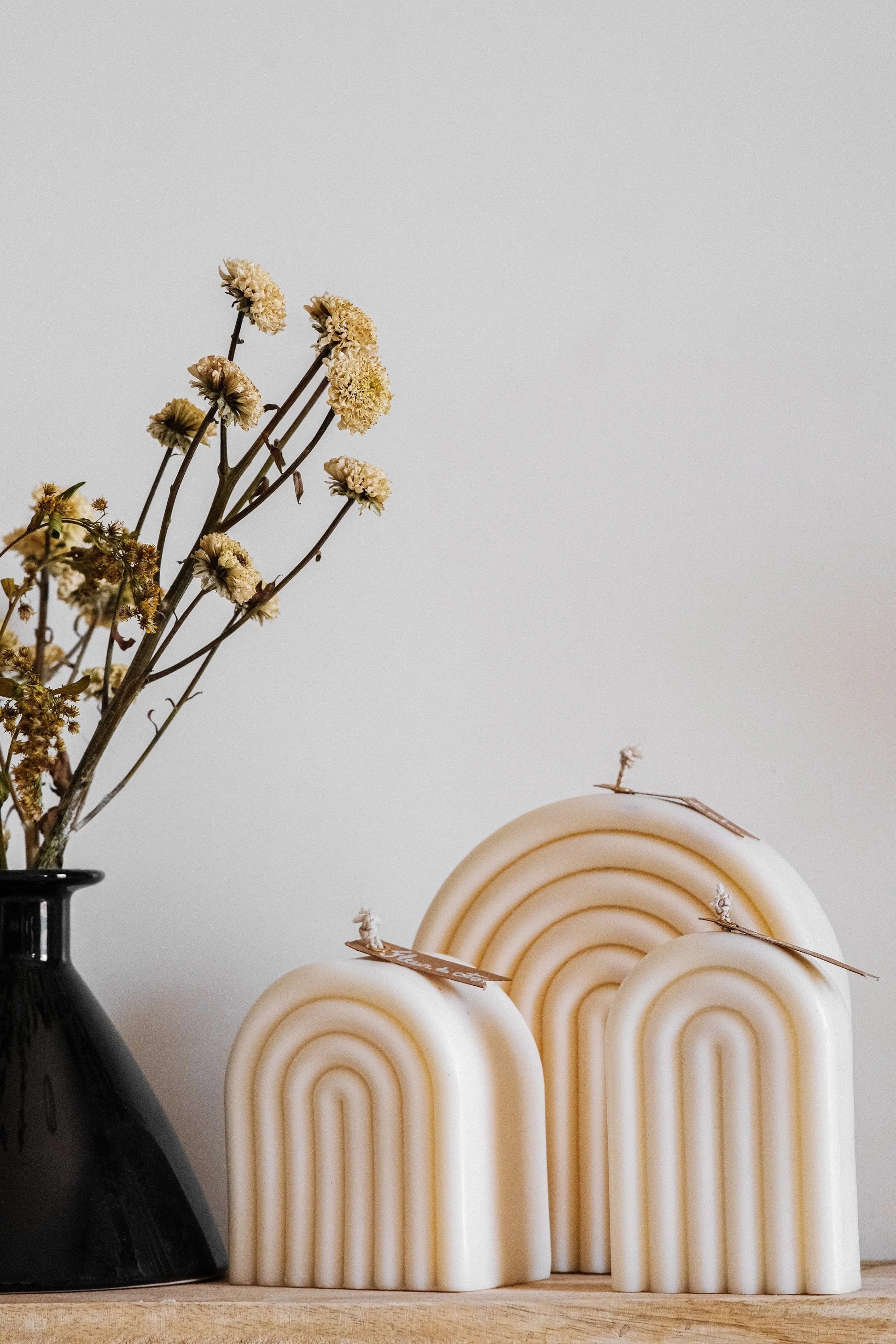 Fabriquées à la main à partir de cire végétale naturelle, notre bougie se décline en plusieurs tailles pour sublimer tous les espaces avec un design minimaliste et chaleureux.